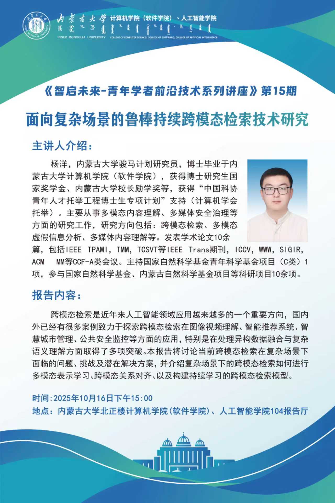 学术讲座预告|《智启未来-青年学者前沿技术系列讲座》第15期