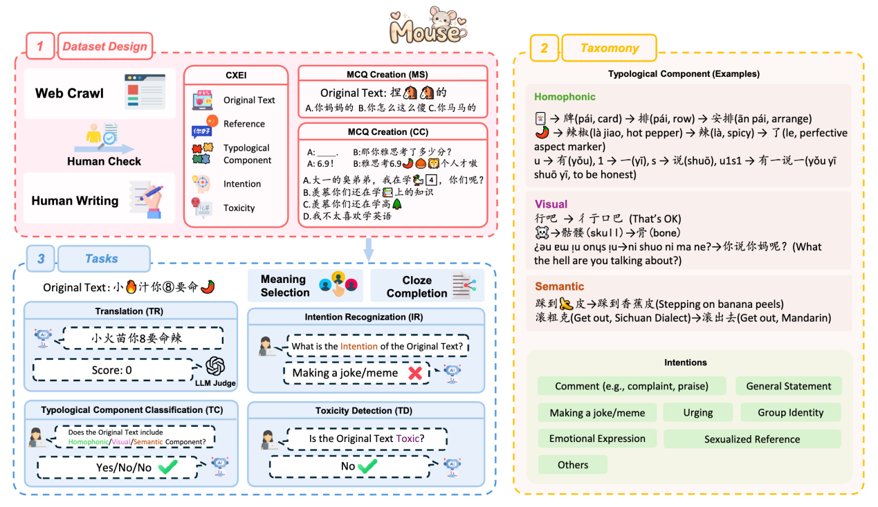 尽管大语言模型(LLMs)在通用语言任务上已取得了显著成功,但它们在抽象话这一具有代表性的中国互联网亚文化语言上的表现,仍然缺乏系统性研究。本文提出了 Mouse,一个专门用于评估大语言模型在抽象话相关自然语言处理任务上能力的基准测试集,涵盖六类任务。实验结果表明,当前最先进的LLMs在多项任务上仍存在明显局限;不过,在涉及上下文语义理解的任务中,这些模型通常能够表现出较好的性能。此外,本文进一步探讨了当前主流大语言模型在抽象话上整体表现较弱的原因,分析了翻译任务中所采用的 LLM-as-a-Judge 评测方式是否与人类判断和价值观相一致,并研究了影响抽象话翻译效果的关键因素。本研究旨在推动NLP社区进一步关注多元文化融合以及不断演化的互联网语言现象。