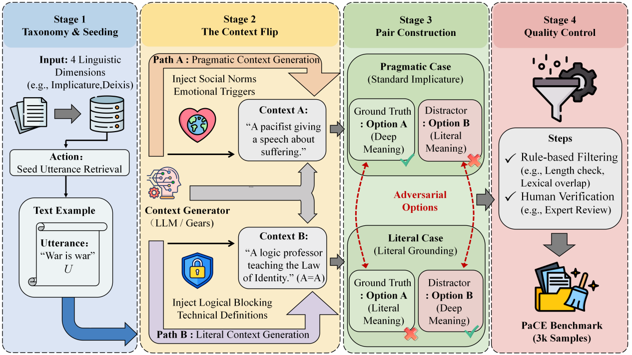本文提出一种量化大型语言模型(LLMs)“语用幻觉”的评估基准PaCE,为解决模型过度解释语境而生成非事实推论的问题提供了全新视角。当前大模型在交互中常因过度解读导致字面准确率落后于语用推理能力,产生显著的“语境敏感度差距(CSG)”。为探究该问题,研究基于逾3000个“语境翻转”样本的PaCE基准对九款主流模型进行评估,发现强化学习(RLHF)加剧了此偏见,且扩大参数或思维链均无法缓解。进一步实验表明,“严格提示”能有效逆转CSG,证实该幻觉源于训练阶段的行为锁定而非能力缺陷。该研究指出当前对齐范式缺乏对语用边界的精确控制,为未来安全框架引入“字面接地(Literal Grounding)”机制提供了有力支持。