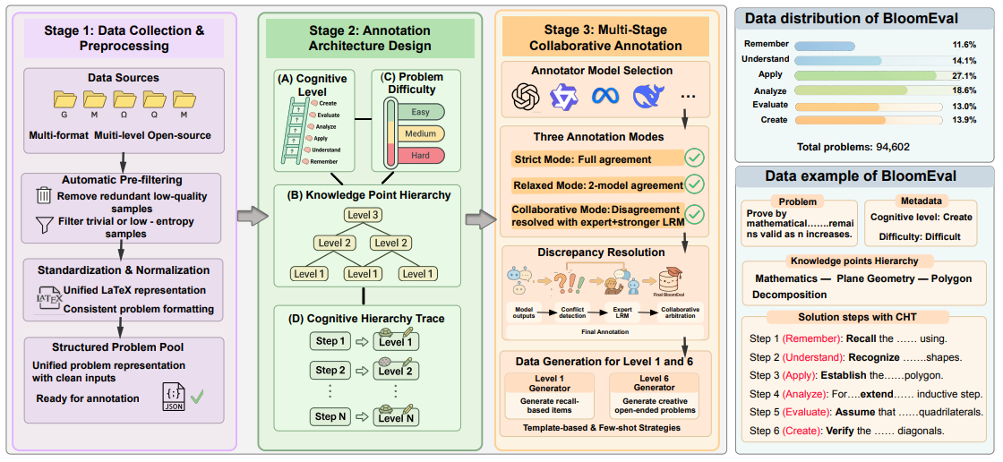 (12)BloomEval: A Bloom’s Cognitive Taxonomy-Based Benchmark for Evaluating LRMs via Cognitive Hierarchy Trace (Findings)