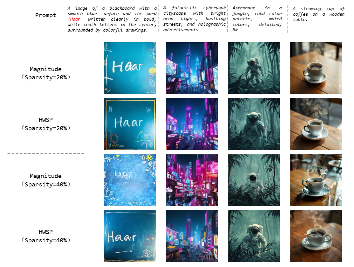 大语言模型(LLMs)在众多自然语言处理任务中取得了最先进的性能,但其庞大的参数规模带来了沉重的计算和存储开销,从而增加了在资源受限环境中部署的难度。剪枝是一种常见的模型压缩策略,通过引入稀疏性来降低这些成本。然而,大多数现有的 LLM 剪枝方法依赖校准数据以及昂贵的权重更新过程,这限制了其实际可扩展性。为了解决这些问题,我们提出了HWSP,一种无需校准数据且无需权重更新的后训练剪枝框架。该方法对每个权重矩阵应用二维 Haar 小波变换,并将其分解为四个频率子带。随后,我们对所有子带分配统一的稀疏率,从而在压缩过程中以均衡的方式保留低频与高频成分。理论分析表明,这种基于子带的分配策略能够保证一定比例的高频系数得以保留,从而减轻全局幅值剪枝所引入的偏置。在LLaMA-70B模型上的实验结果表明,HWSP在显著降低剪枝时间的同时,能够达到与当前最先进剪枝方法相当的精度。此外,由于HWSP不依赖校准数据或权重更新,该方法可以自然迁移至多模态大模型,并在标准基准测试中取得更强表现。